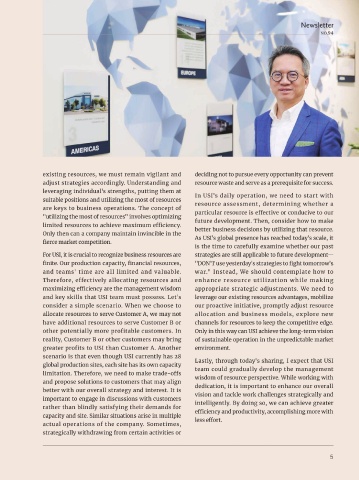 possesses resource advantages that can contribute to suitable positions and utilizing the most of resources In USI's daily operation, we need to start with