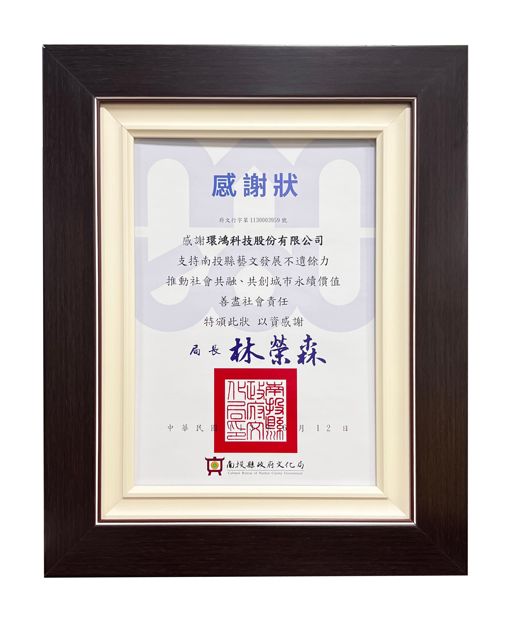 2024南投縣政府文化局感謝狀 (臺灣廠)